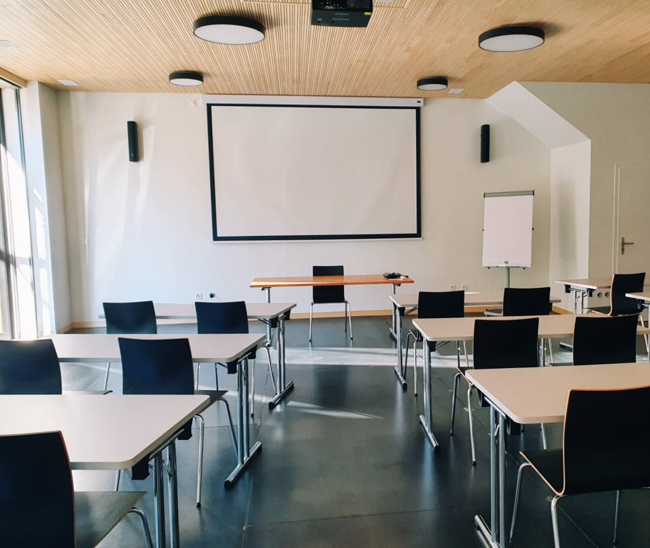 Toutes les salles sont équipées de beamer, écran, flipchart afin de garantir des conditions de travail efficaces.